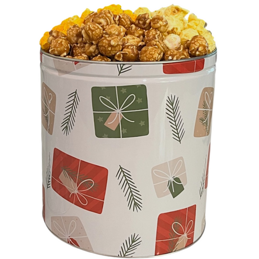2 Gallon Holiday Popcorn Tin, 3 Flavors