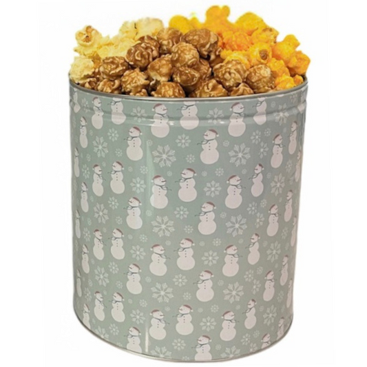 2 Gallon Holiday Popcorn Tin, Snowflake Design, 3 Flavors