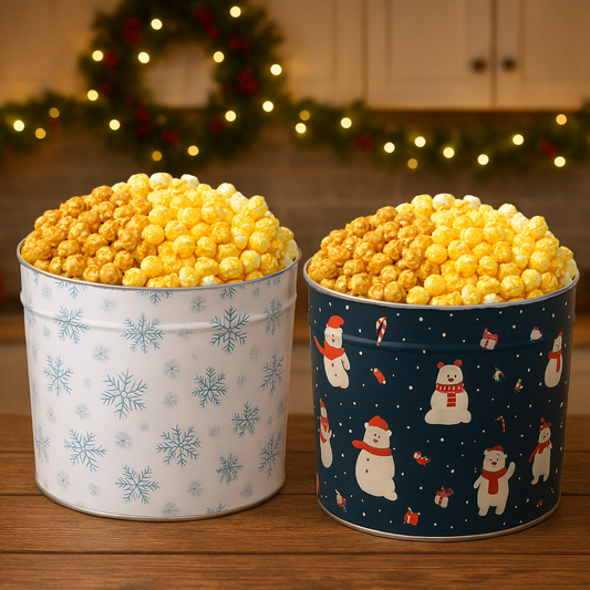 Holiday Popcorn Tin 2 Pack, 1 Gallon Each, 3 Flavors