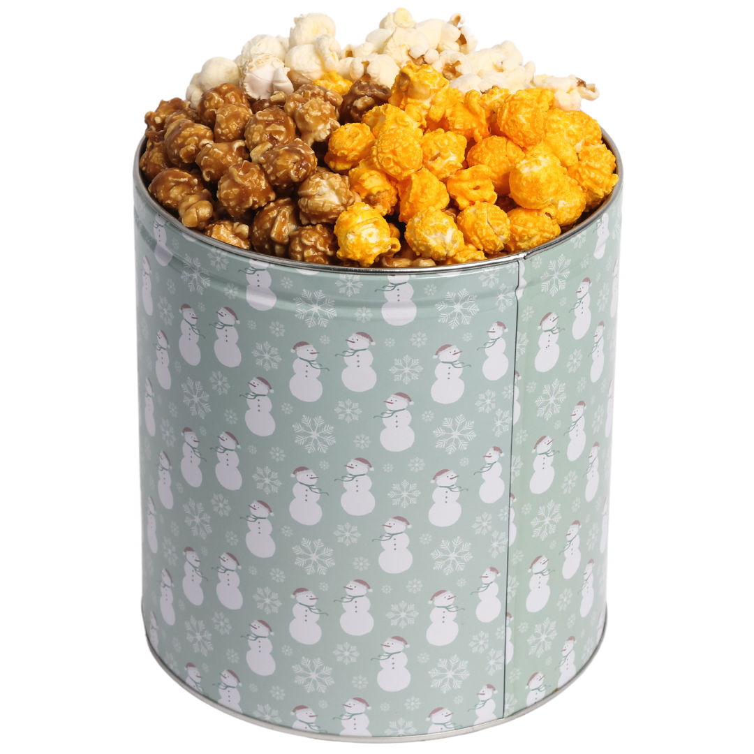 Uncle Myron's 1-Gallon Holiday Popcorn Tin – Snowman Design, 3 Flavor Assortment